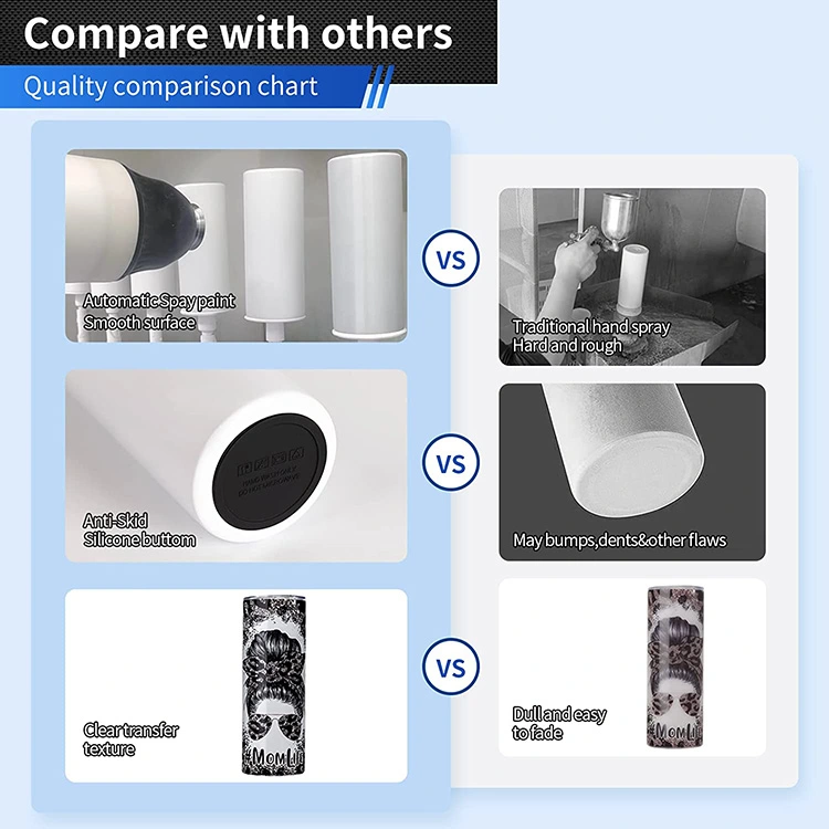 Sublimaatiopinta: Juomapullojemme pinta sopii sublimaatiotulostukseen. Tämä mahdollistaa räätälöityjen mallien, logojen tai taideteoksen käyttämisen, mikä tekee jokaisesta pullosta ainutlaatuisen ja heijastaa henkilökohtaista tai brändityyliäsi.